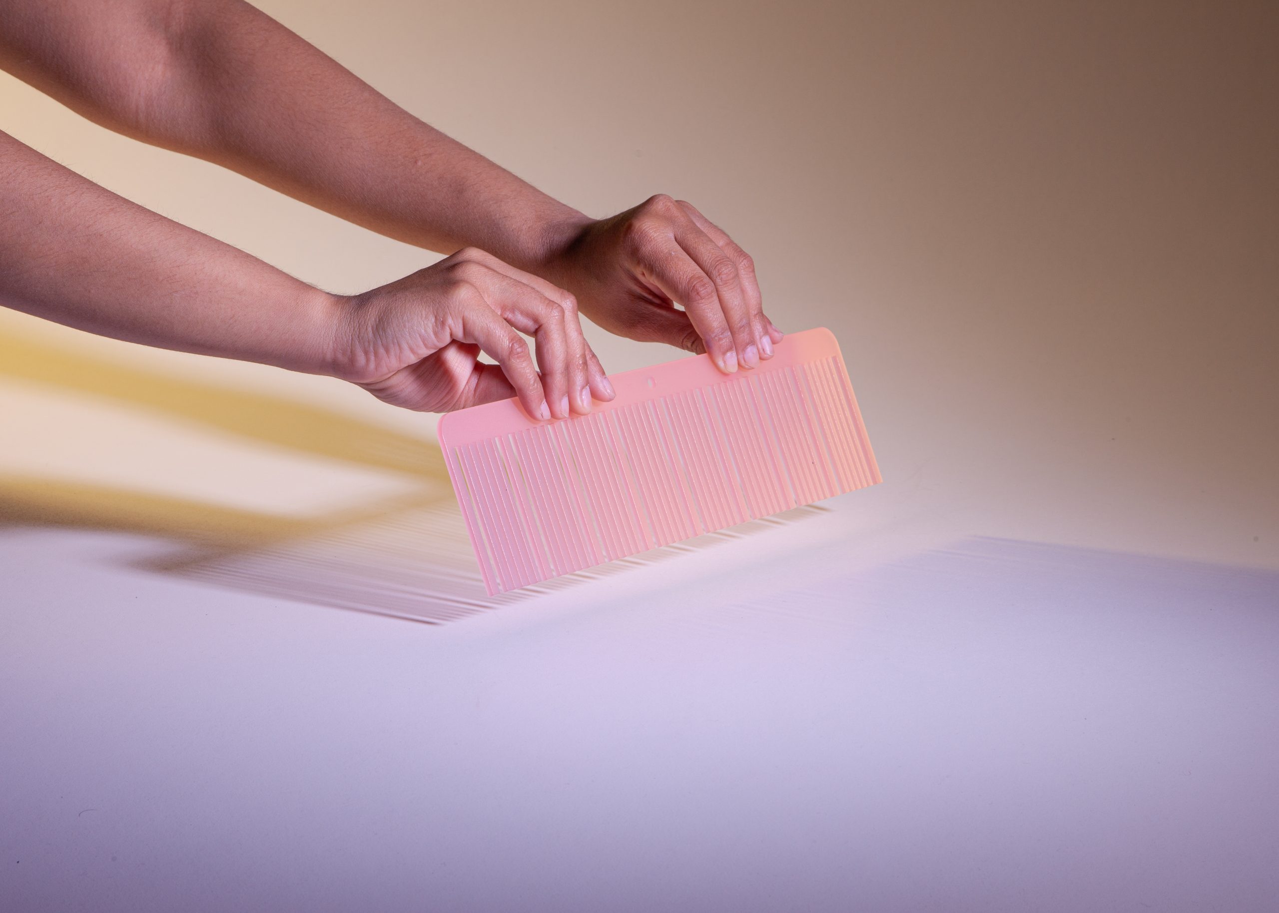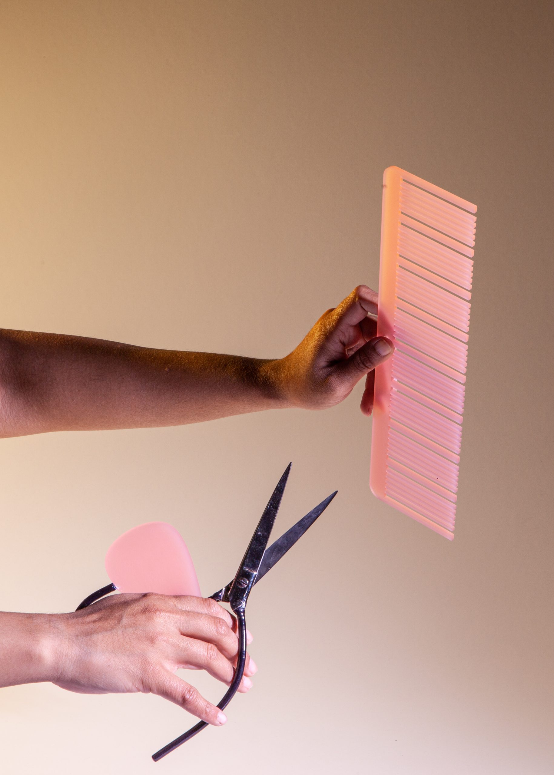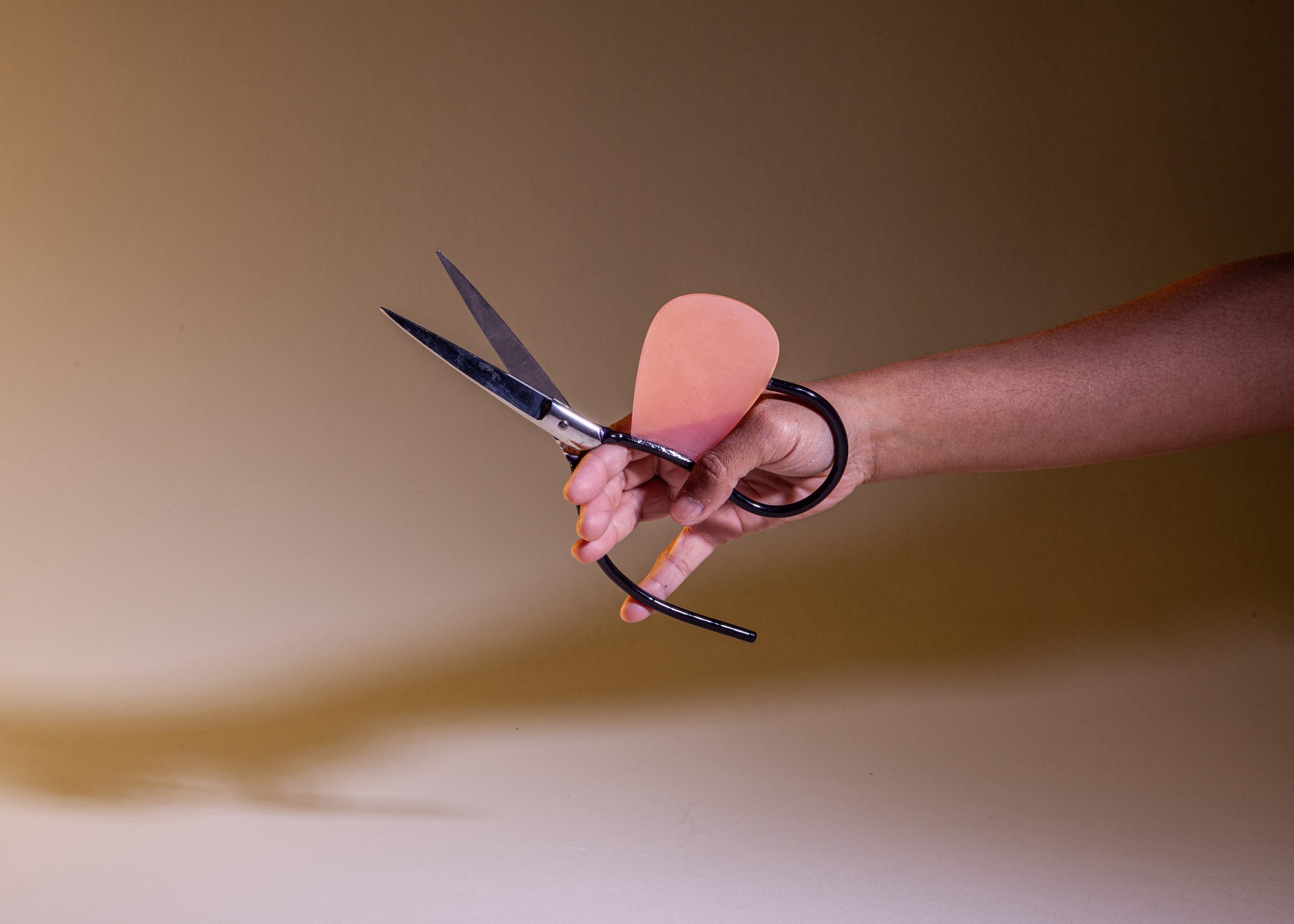 Le ciseau-cisaille évoque un insecte. Son manche, d’un côté bouclé et de l’autre non, crée une posture de la main bien spécifique à l’objet. Le petit doigt actionne délicatement la lame.
