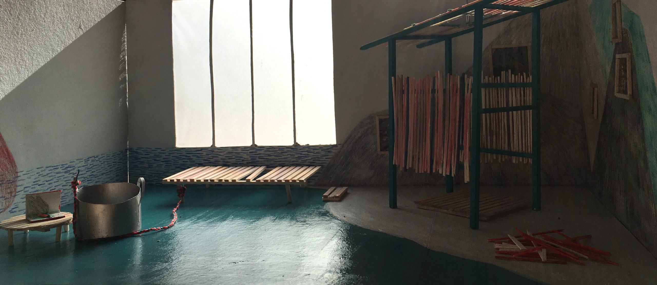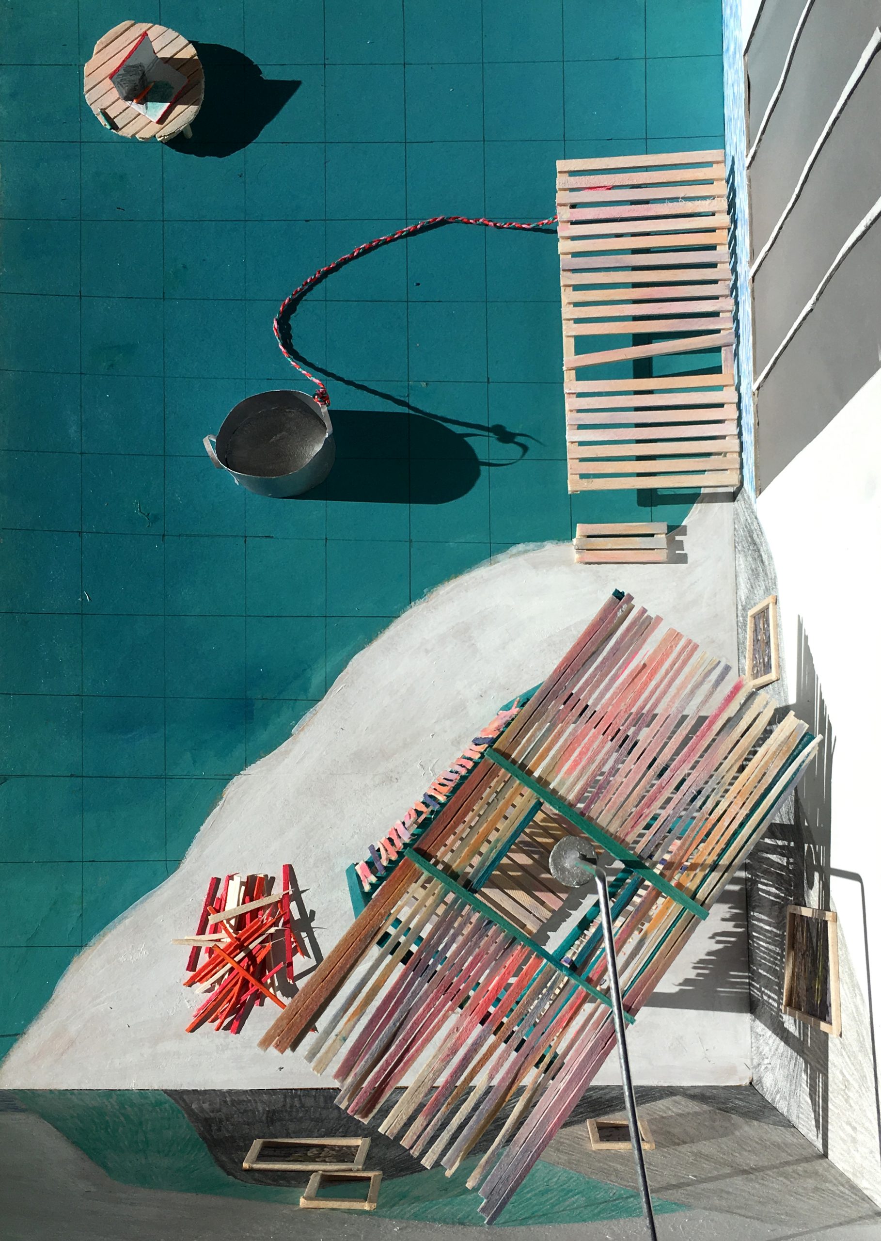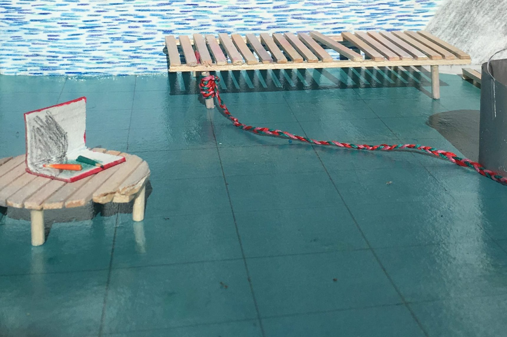 À partir d’un souvenir d’enfance, celui d’une salle de bain inondée, comment retraduire dans une pièce ce paysage d’une île dont on rêvait alors ?