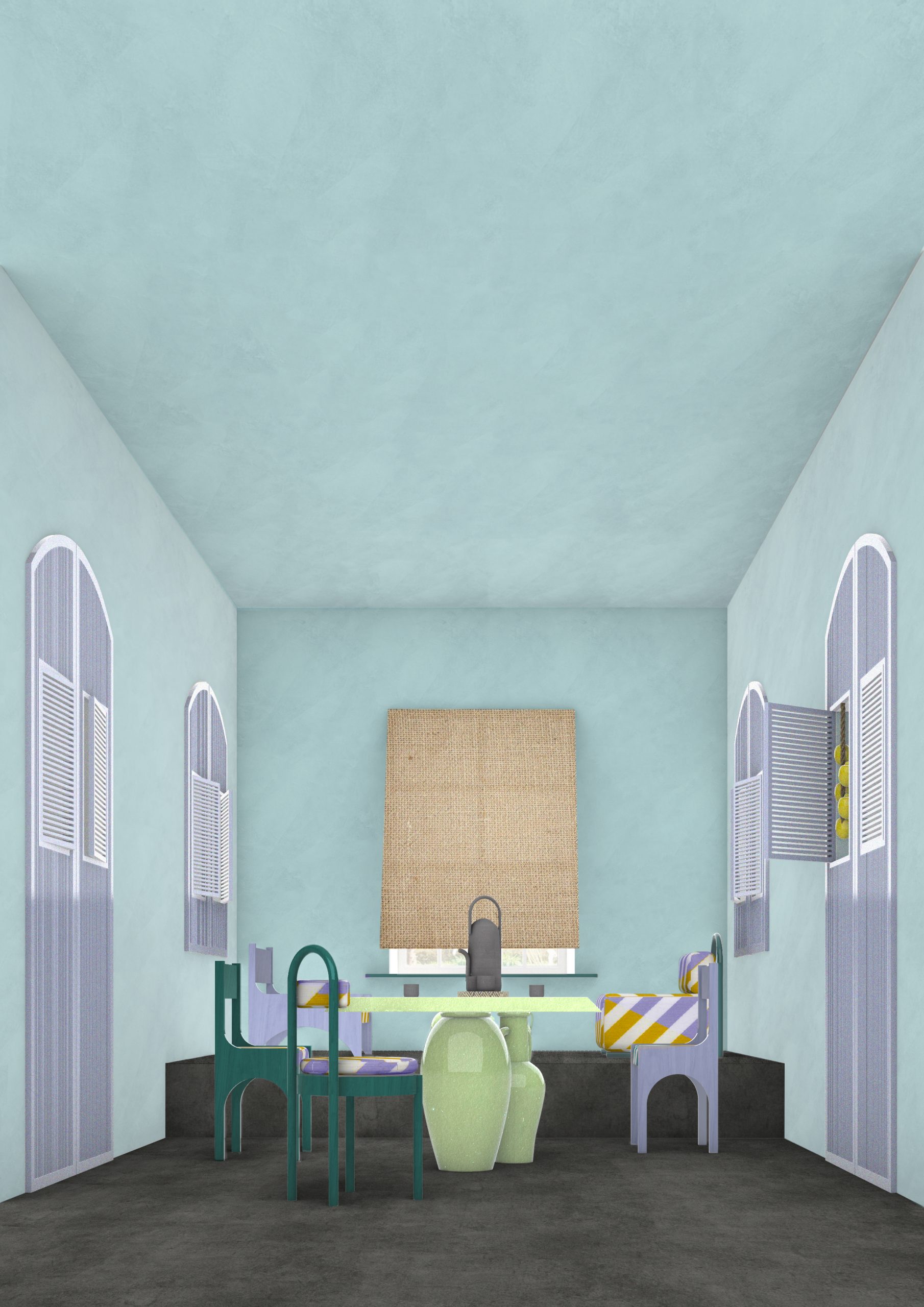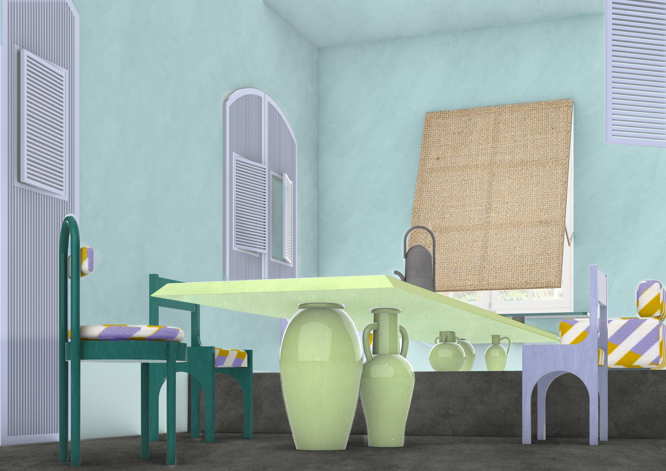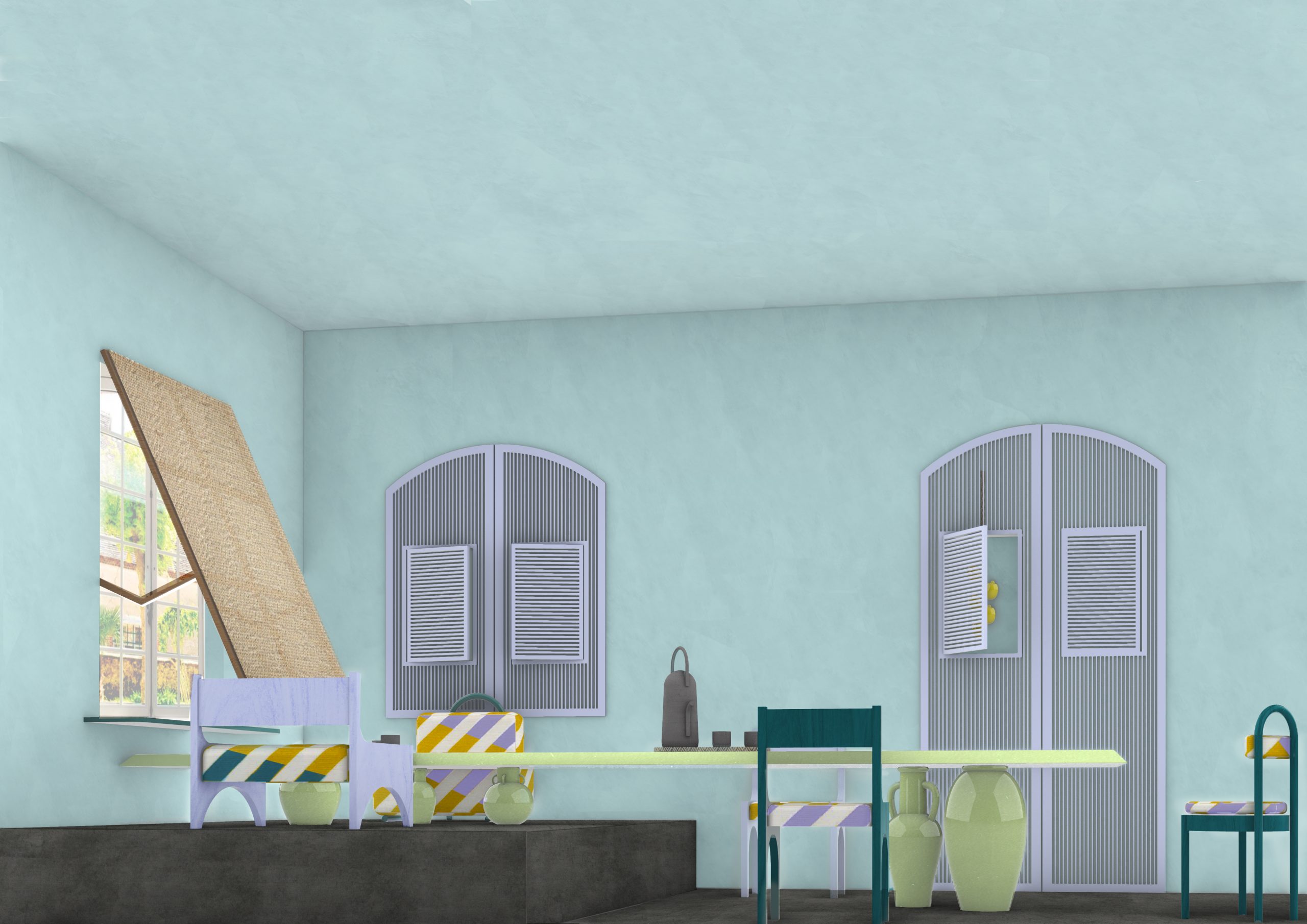 Les jarres sentaient encore l’huile d’olive est une proposition d’aménagement d’une pièce dans une villa en Méditerrannée.