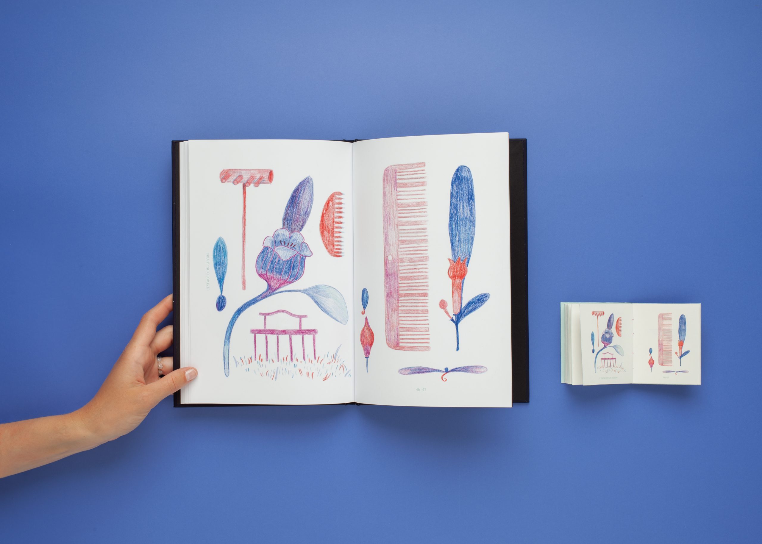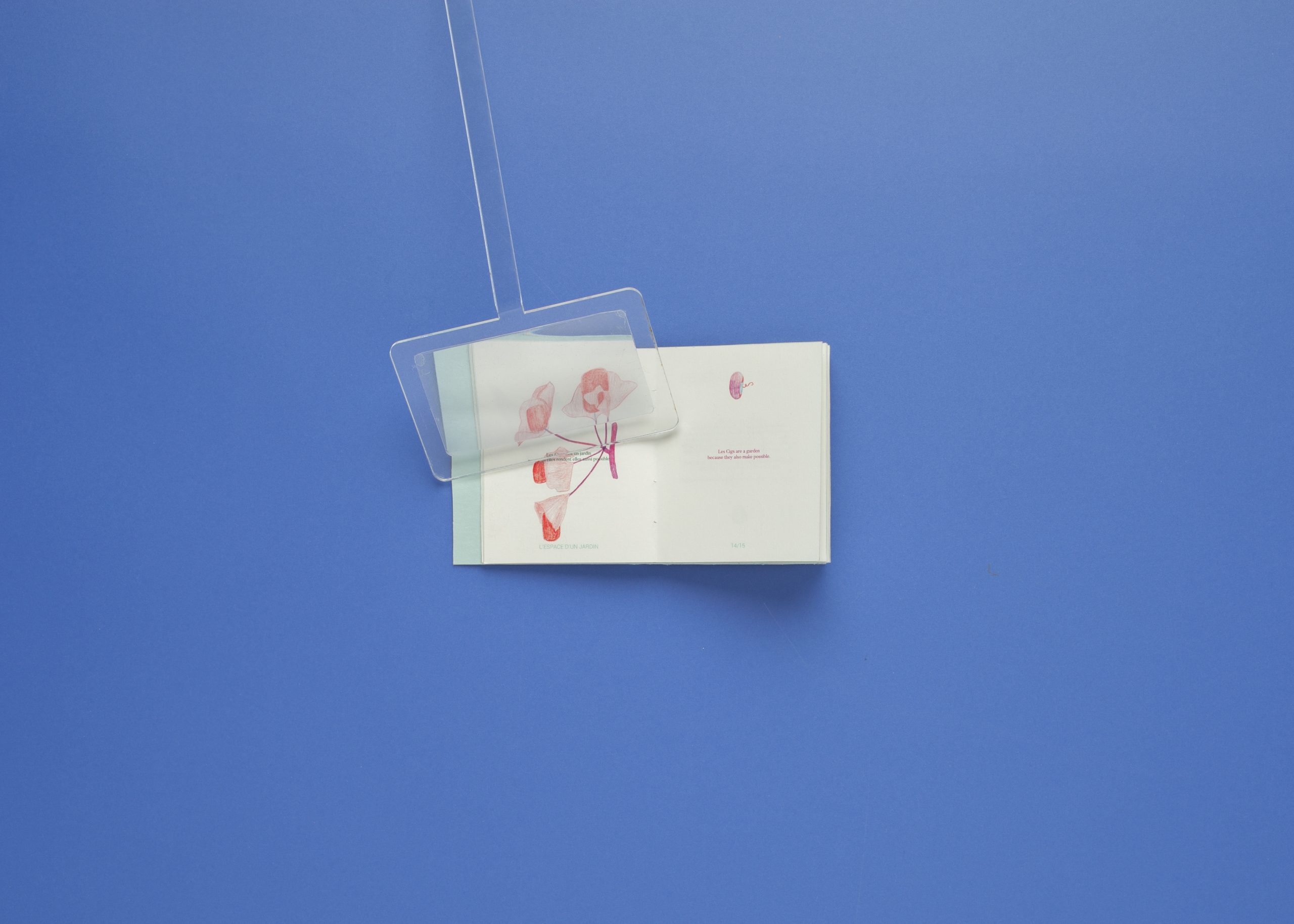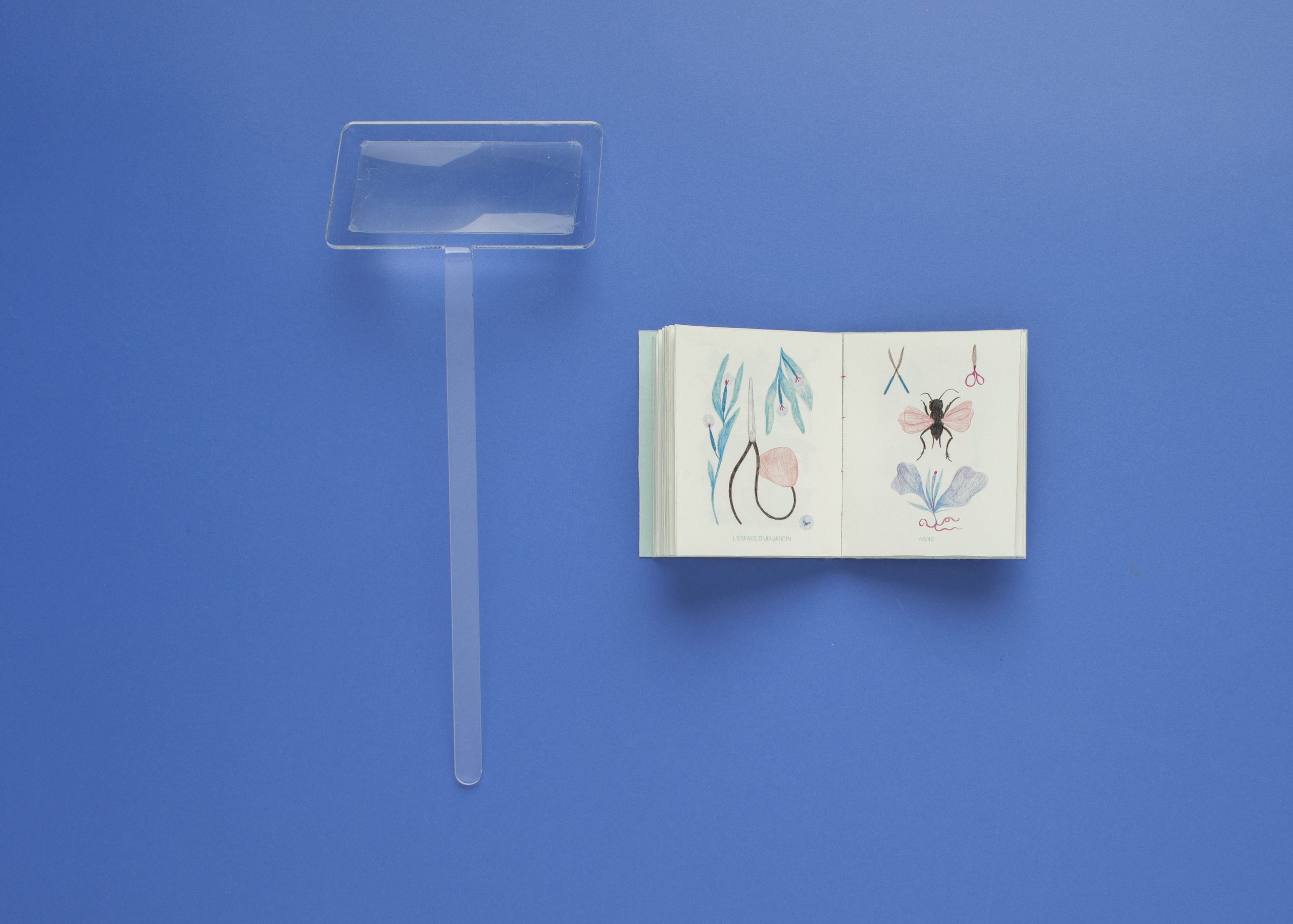 L’édition format mini s’accompagne d’une loupe prenant la forme d’une étiquette de jardin ; elle devient un objet scénographique à part entière de l’installation Les Cigs.