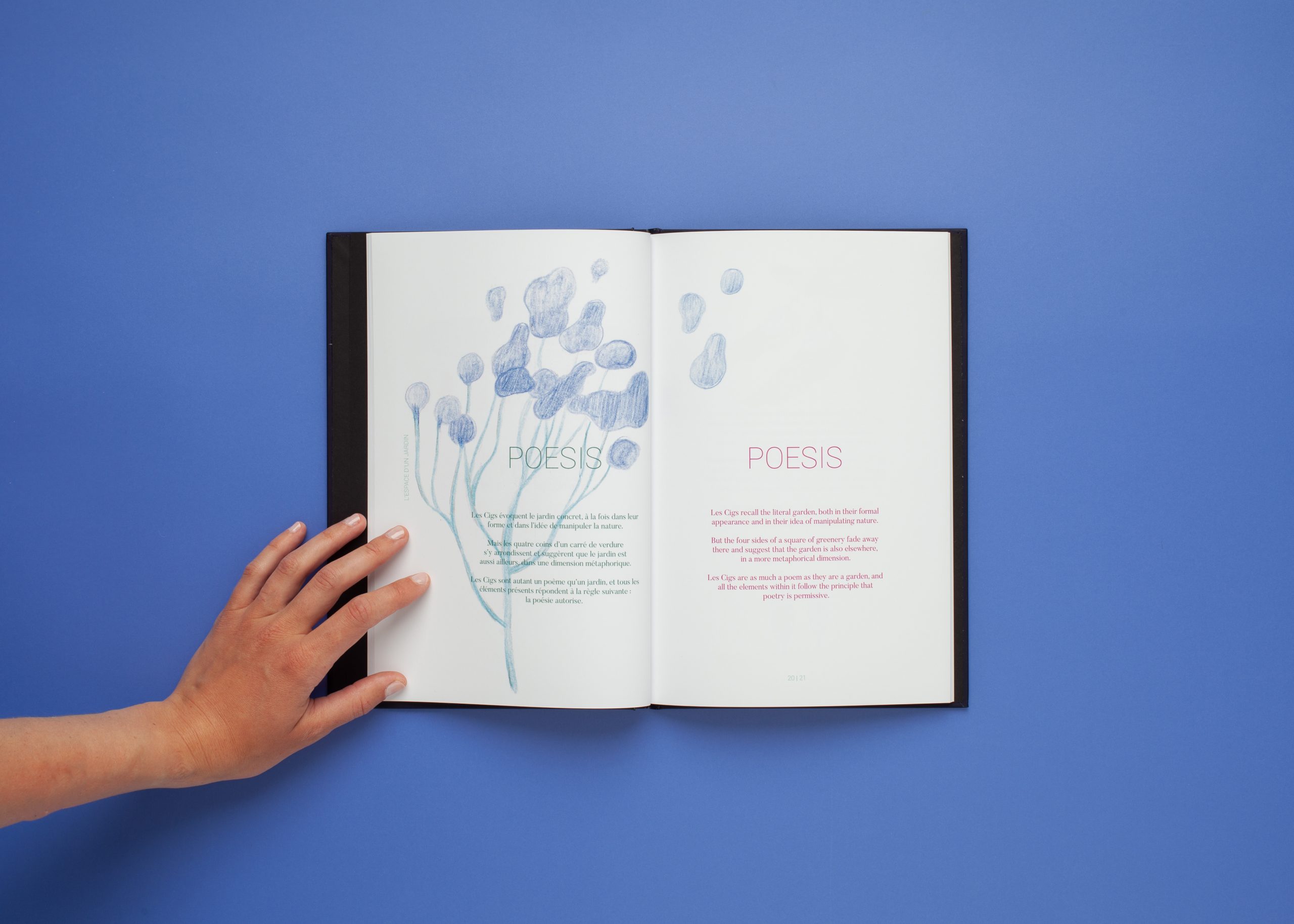 L’espace d’un jardin regroupe les références et les idées qui ont nourri le projet Les Cigs. Qualifié d’herbier conceptuel, il peut se lire comme un essai, ou se feuilleter au hasard : chaque page peut se lire individuellement.