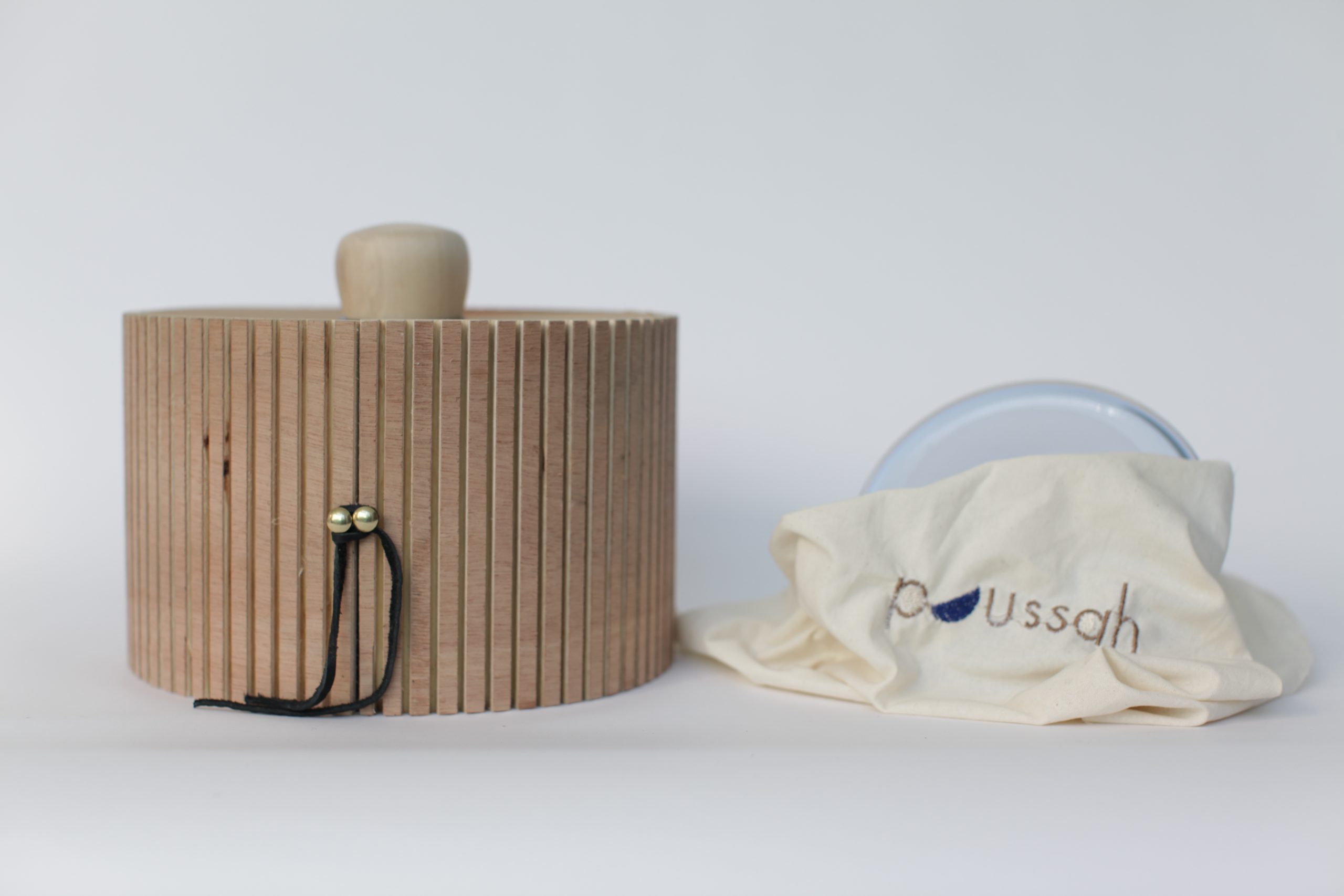 Création du packaging et de l’identité visuelle de Poussah, lampe de table créée lors du Design Creative Camp #3 de l’Atelier-Musée du Verre de Trélon.